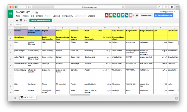 Проект Refugee Phrasebook начинался как группа в Фейсбуке, где волонтеры из Германии собрали около 300 фраз на 28 языках, чтобы помочь в коммуникации беженцам и мигрантам, которые попадают в страну.