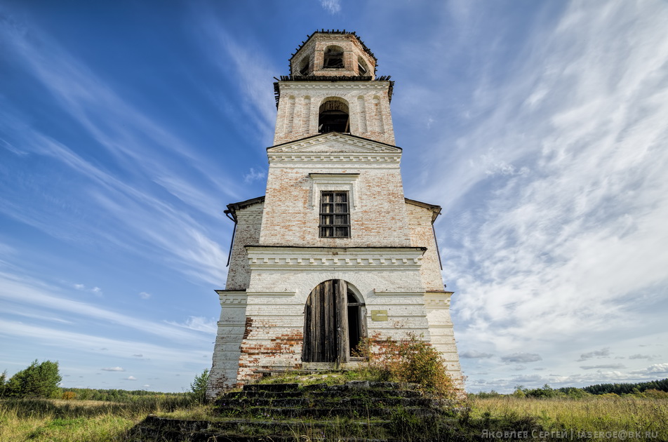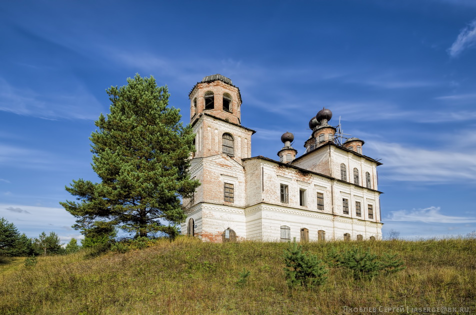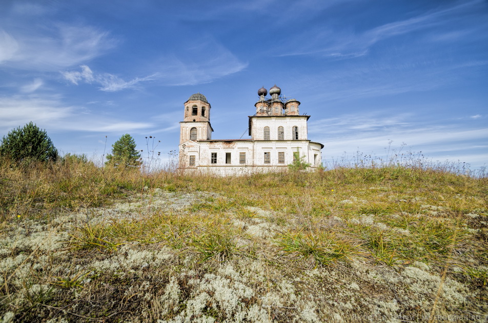 Вознесенская церковь на Ворбасе - один из моих любимых каменных храмов Архангельской области. Памятник середины XIX века живописно расположился на угоре. Внутри сохранились росписи стен и столпов. Но с каждым годом этой достопримечательности становится все хуже и хуже. Как выглядел храм еще несколько лет назад можно посмотреть в моем старом посте (там и история храма), здесь же будут фотографии сентября 2015 года.
