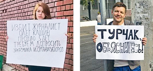 Журналисты московских изданий вышли на пикет к СКР с требованием допросить Турчака по делу Кашина. Никаких последствий пикет пока не имел.