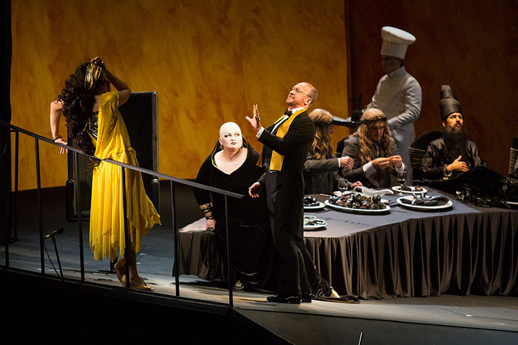 «Танец семи покрывал» — девять самых знаменитых минут из полутора часов этой оперы — далеко не единственное, чем можно заслушаться в спектакле. Оркестр Латам-Кёнига опутывает слушателя то мягко, то властно, то томно, то обжигающе, неуклонно ведя к черной воронке финала. От нее никуда не деться, не увернуться, музыкальная драматургия жестко выстраивает эту неотвратимость.