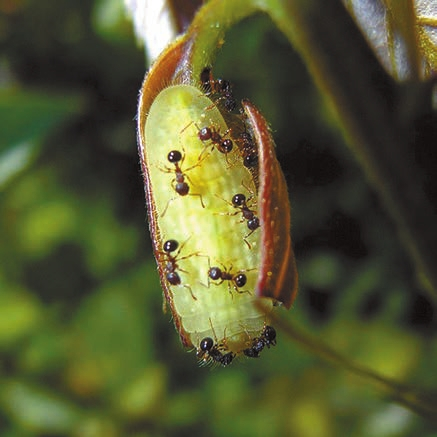 Этот секрет муравьев как будто завораживает: раз отведав его, они приходят к гусеницам снова и снова или просто стоят вокруг. Исследователи предположили, что выделения ДНО не просто кормят муравьев, но и каким-то образом влияют на их поведение. Эту гипотезу японские исследователи проверяли вместе с сотрудницей Музея сравнительной зоологии Гарвардского университета Наоми Пирс (Naomi Pierce), которая много лет изучает сложные отношения голубянок с муравьями [2].