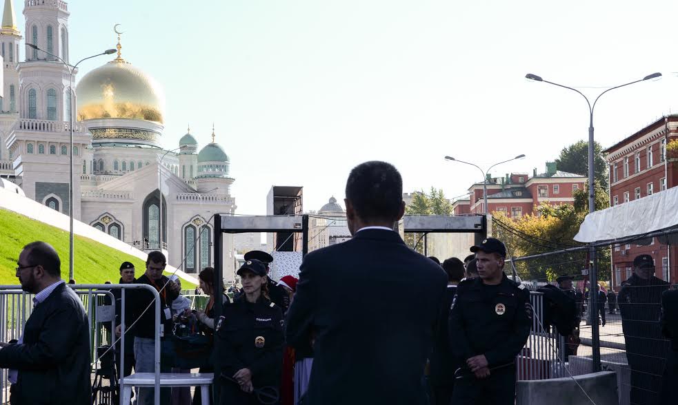 С раннего утра для проезда и прохода полиция перекрыла все прилегающие улицы, выставив турникеты, оцепление, конную полицию и кинологов с собаками. Вход на территорию мечети осуществлялся только по приглашениям.