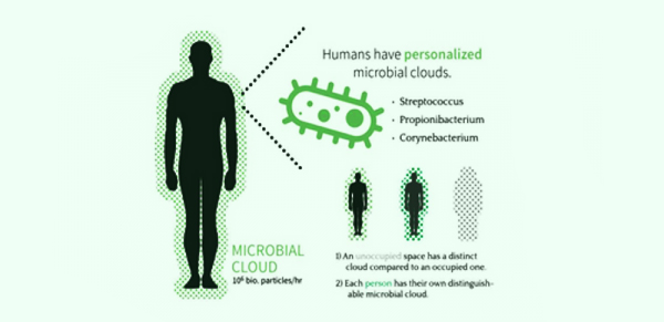 Люди оставляют в пространстве след из микробов. Кожные бактерии создают «микробное облако» вокруг каждого человека. Теперь выяснилось, что эти облака настолько же уникальны, как и отпечатки пальцев.