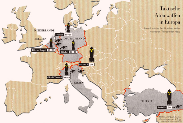 По оценкам прессы, речь идет о 20 авиабомбах B-61-12. Это модернизированные американские бомбы старого образца. Подобное ядерное оружие США и сейчас есть в Европе. Эксперты называют Германию, Бельгию, Голландию, Италию и Турцию странами, на авиабазах которых размещены бомбы с ядерными зарядами