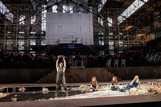 Уж с кем с кем, а с Вагнером Теодор Курентзис в сознании его многочисленных поклонников и противников — прежде всего, российских — никак не монтируется. А для немецкой публики приглашение экстравагантного грека с российским паспортом (хоть не совсем здесь неизвестного, но все же чужака) поработать с «нашим всем» — это вообще вызов. Но, собственно, на то и Руртриеннале, что здесь не принято искать очевидные решения. Тем более для одного из центральных событий нынешнего фестиваля — постановки «Золота Рейна», первой части вагнеровской тетралогии.