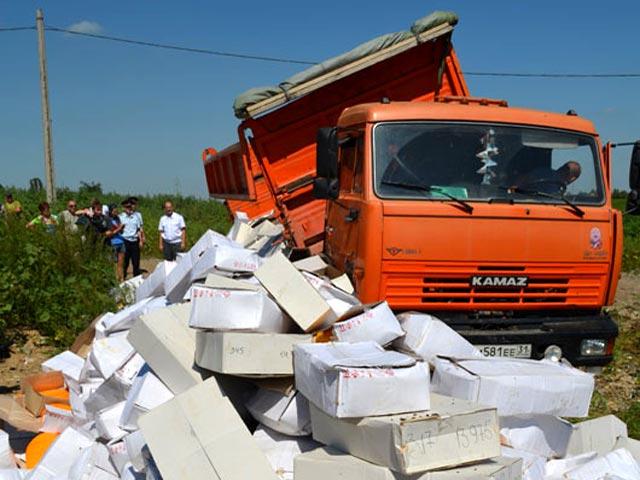 Уничтожать ввезенные в Россию продукты из санкционного списка начали в начале августа. Соответствующий указ 29 июля подписал российский президент Владимир Путин. Первая партия продуктов была ликвидирована 6 августа. Тогда, по данным Россельхознадзора, было демонстративно уничтожено около 350 тонн "запрещенки".