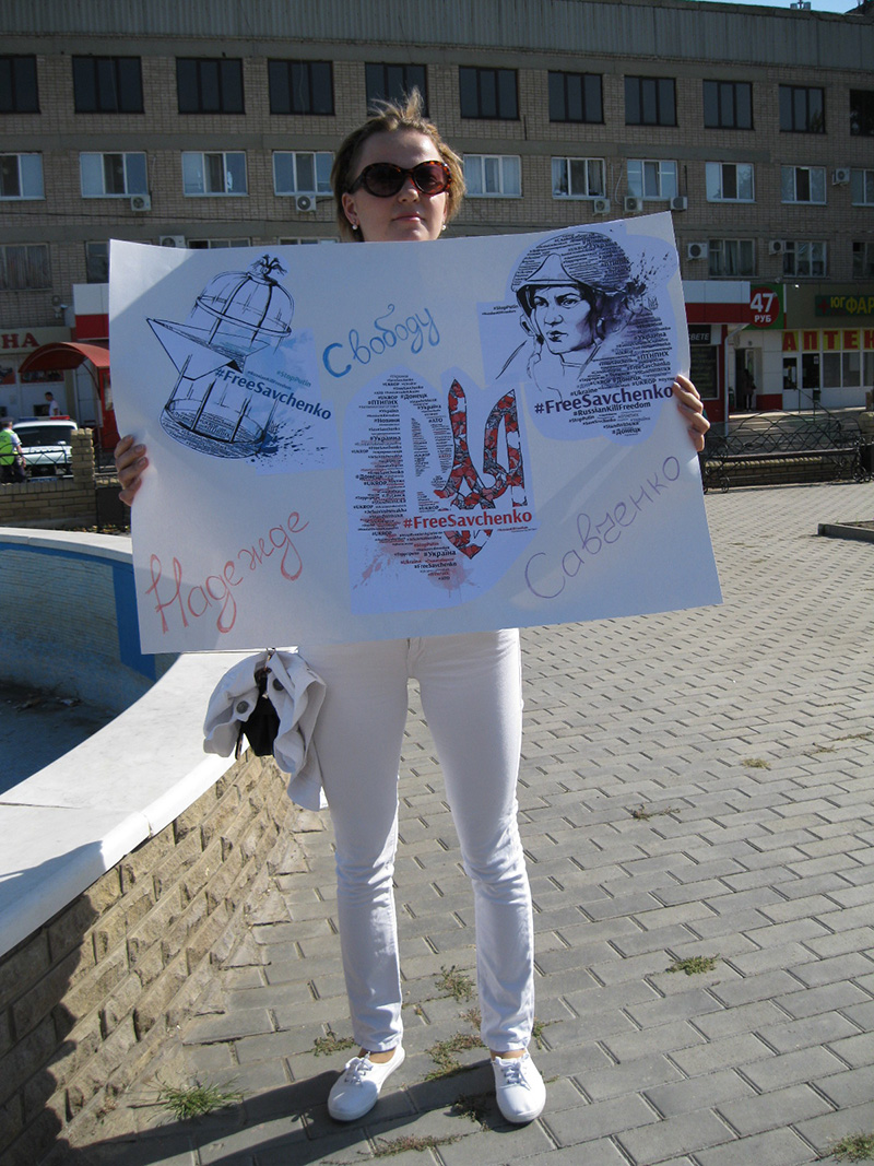 Как передает "Кавказский узел", в понедельник в Ростове-на-Дону более 20 гражданских активистов провели групповой пикет в поддержку Савченко. Во вторник одиночный пикет солидарности с политзаключенной прошел у здания суда в Донецке.