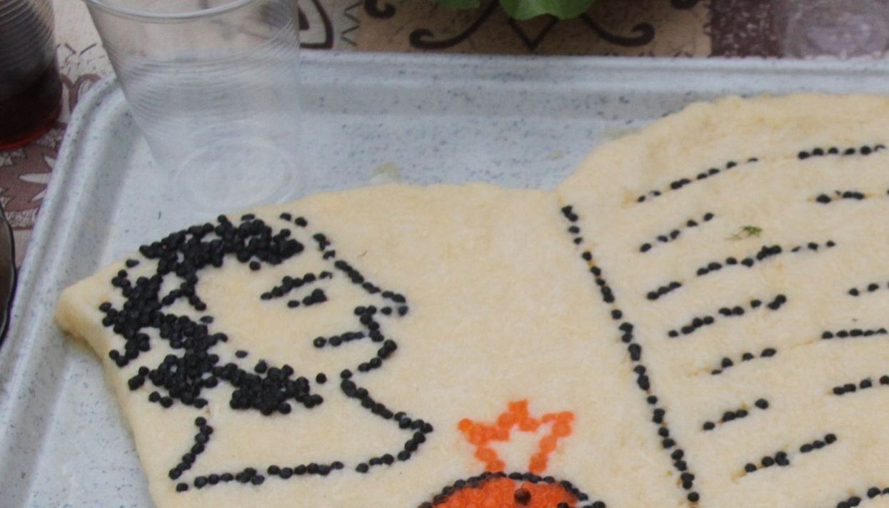 Кемеровские учителя выложили портрет Александра Пушкина черной икрой. Кулинарную инсталляцию они создали во время туристического слета, посвященного году литературы в России.
