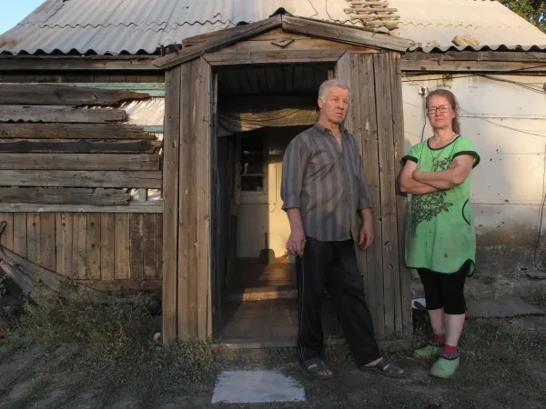 Дома № 34 и № 47 на Балтийской улице, где прошлым летом упали несколько мин, до сих пор заброшены. Лишь воронки засыпали. Кажется, в одном доме (окна заколочены, стены в дырочках) кто-то есть. Это Тамара Некрасова и ее брат Василий. Они приезжают время от времени, присматривают за постройкой. В день обстрела Тамара была дома вместе с матерью, Феоктистой Петровной.