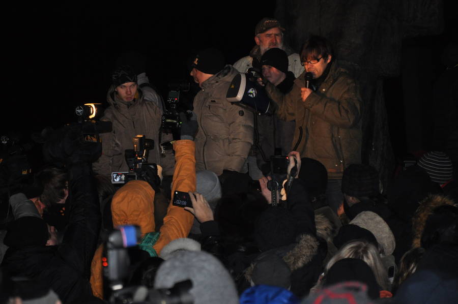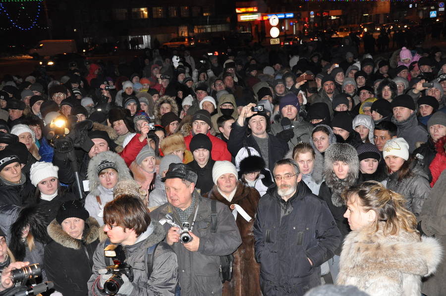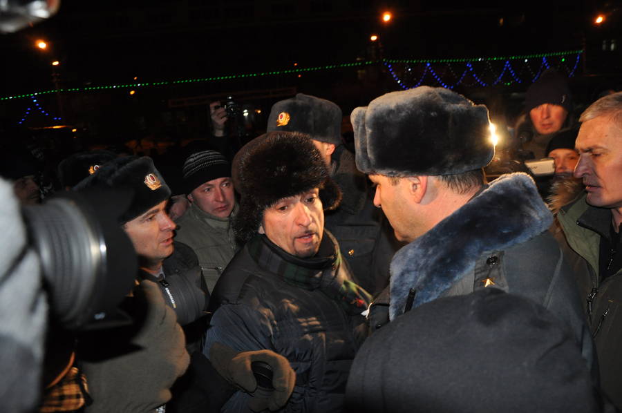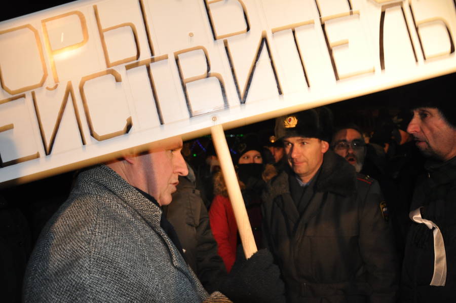 После того как народ начал скандировать: "Служите народу, а не уродам!" случилось первое задержание. задержан и препровожден в автозак общественник Леонид Зильберг