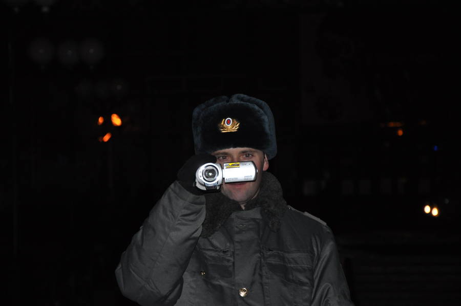 Все происходящее снимал один из блюстителей порядка, иногда почти тыкая камерой в лицо