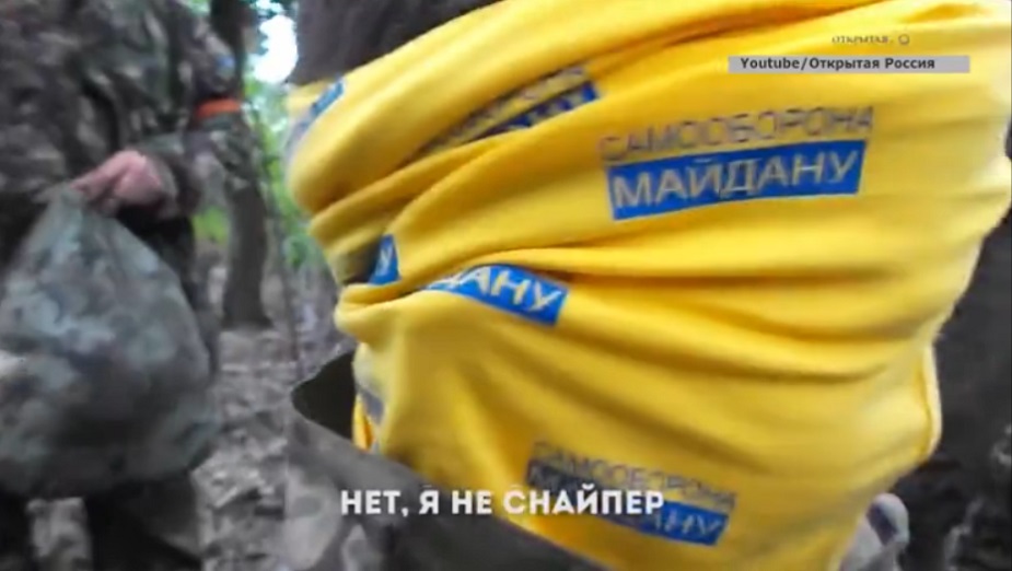 Затем план видеозаписи меняется: на кадре появляется женщина в маске, на которой написано «Самооборона Майдана». Голос за кадром говорит, что это снайпер, однако девушка это отрицает и признается, что у нее лишь автомат.