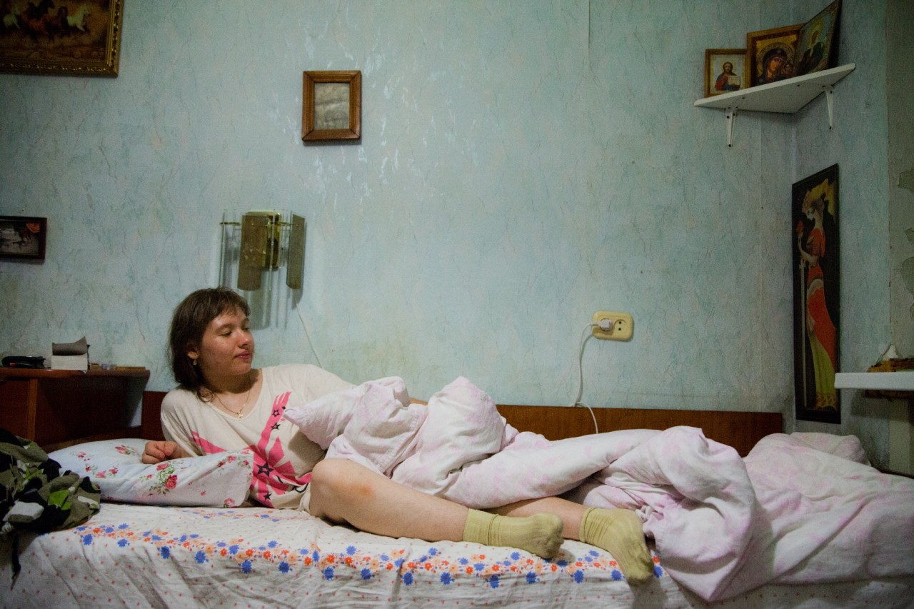 Мы познакомились с Юлей четыре года назад (сейчас ей 26 лет). Она начала свою жизнь уже с нездоровыми ногами и глазами — результат неаккуратного акушерского вмешательства. Позже ей поставят диагноз ДЦП.