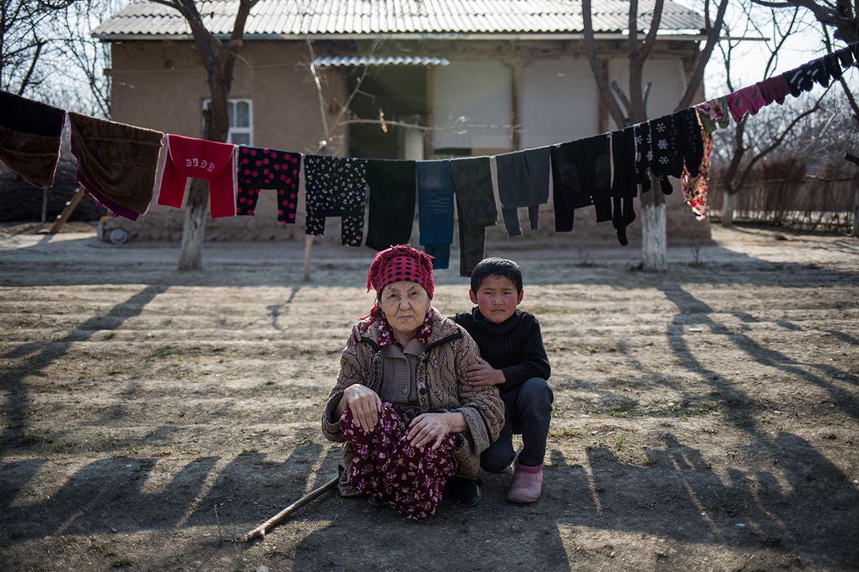 Айниса, 60 лет, с внуком. Все ее дети работают в России. Село Чек, Баткенская область