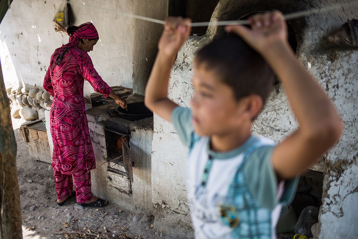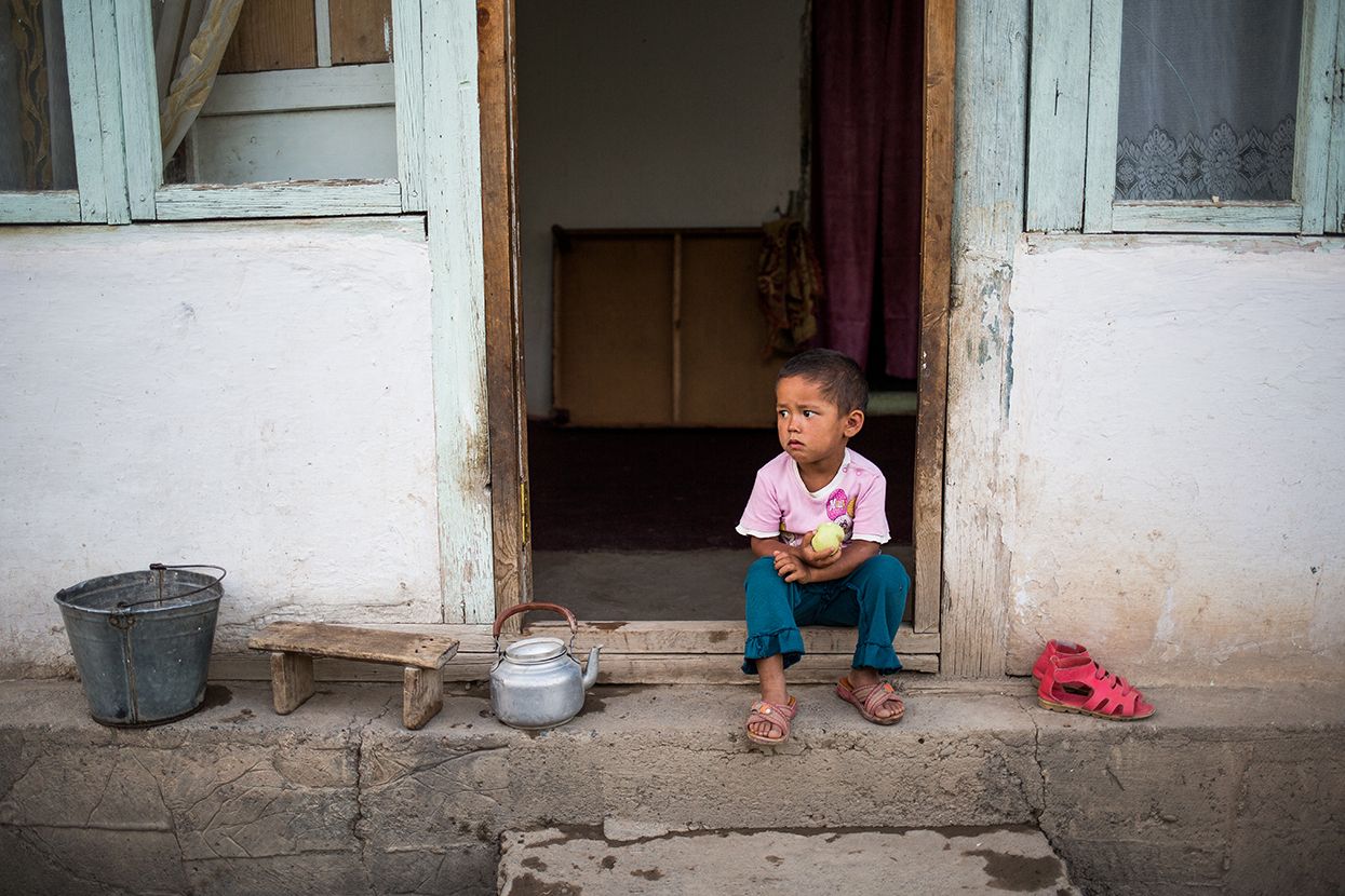 Ребенок ждет возвращения своего отца, который работает дворником в Москве. Араванский район, Ошская область