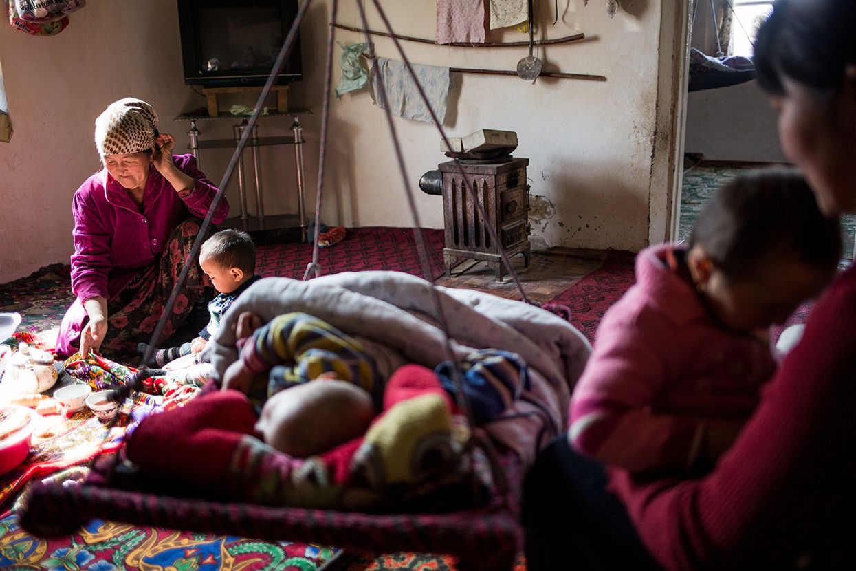Лайла, 70 лет, воспитывает четырех внуков — их родители работают в России уже более трех лет. Джаны-Джер, Баткенская область
