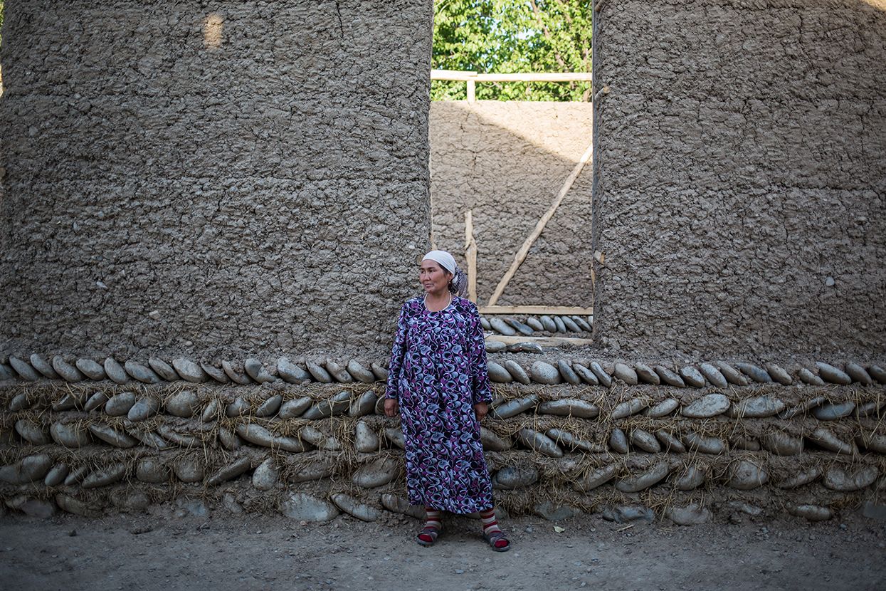 Айлия, 45 лет. Ее сыновья и муж работают в России. Она строит дом на деньги, которые они высылают, — лично руководит строительным процессом. Карабаг, Баткенская область