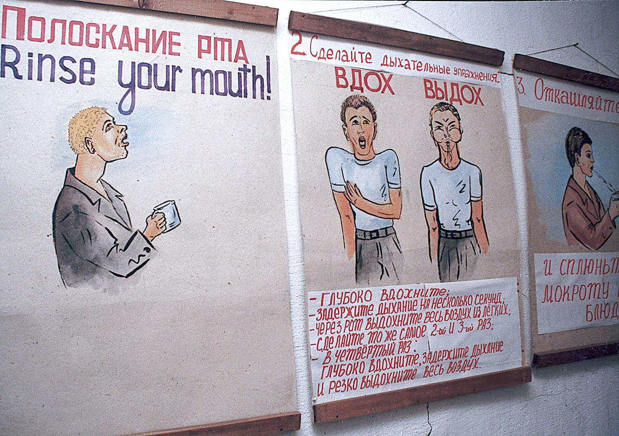 Туберкулез и тюрьма в России. 1998-1999Наглядная агитация в колонии в Мариинске, находившейся под патронажем «Врачей без границ».Фото: Сергей Гитман/Международный научный фонд