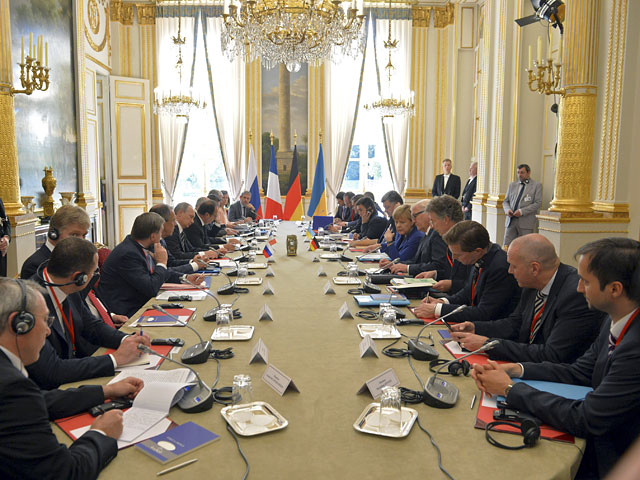 Президент Украины Петр Порошенко в это же время заявил, что "нормандская четверка" поддержала проведение выборов на Донбассе по украинскому законодательству при наблюдении ОБСЕ". Он также сделал акцент на том, что участники переговоров в Елисейском дворце отметили недопустимость проведения выборов в ДНР и ЛНР.