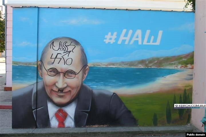 Портреты Путина портят неизвестные в разных городах Крыма. В Ялте 11 сентября на масштабном граффити из Путина «сделали» Гитлера. В конце августа в Симферополе облили краской портрет президента России Владимира Путина, нарисованный на фасаде дома на улице Пушкина.