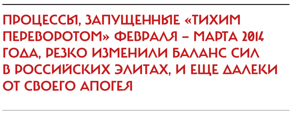 Процессы, запущенные «тихим переворотом» февраля-марта 2014 года, когда узкой группой лиц было принято решение о проведении операции по присоединению Крыма к России, резко изменили баланс сил в российских элитах и еще далеки от своего апогея. И по всей видимости, управляемое противостояние старой «коммерческой» опричнины второй половины 2000-х и новой, как бы «геополитической» опричнины 2010-х становится одним из главных сюжетов внутренней жизни режима на данном этапе. Покуда нефть и газ падают в цене, война и тюрьма становятся для авторитарного распределительного режима все более необходимыми опорами.
