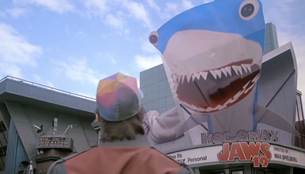 Студия Universal Pictures выпустила шуточный трейлер несуществующего фильма «Челюсти 19», который упоминается в реальном фильме «Назад в будущее 2». Попав в октябрь 2015 года, Марти Макфлай видит на кинотеатре афишу фильма и гигантскую голографическую акулу, которая пытается его проглотить. Вот этот момент: