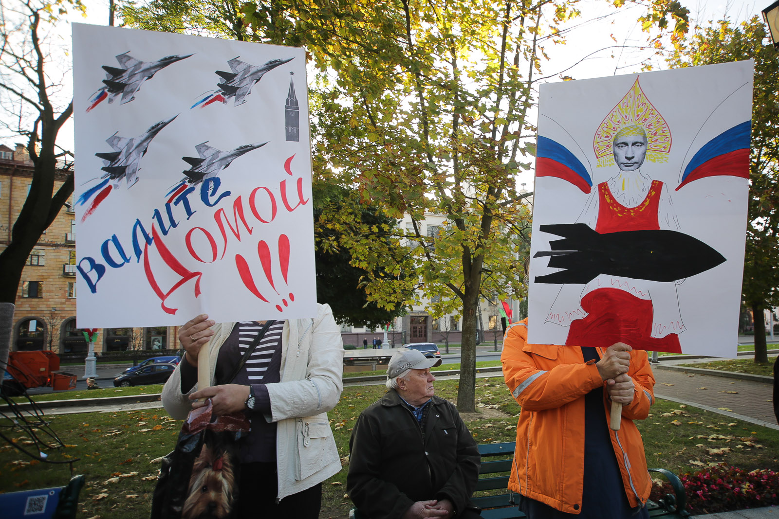 4 октября в Минске прошла несанкционированная акция против размещения на территории Белоруссии базы российских вооруженных сил. В митинге участвовали несколько сот человек с плакатами, флагами оппозиции и знаменами Евросоюза. Перед собравшимися выступили оппозиционные политики.