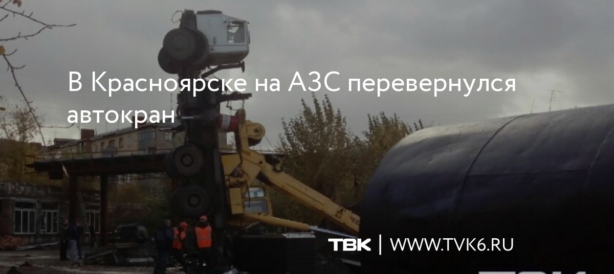На улице Свердловская в Красноярске сегодня, 6 октября, перевернулся автокран. ЧП произошло на автозаправке, которая в данный момент ремонтируется.