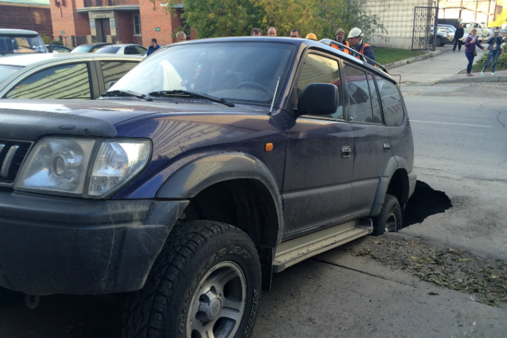 Асфальт провалился под автомобилем в центре Новосибирска