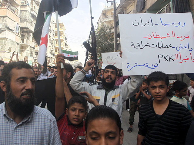 Отмечается, что демонстрации в городе Алеппо проводятся в знак протеста против российских бомбардировок сирийских городов, "которые привели к смерти сотен детей, под предлогом войны с терроризмом".