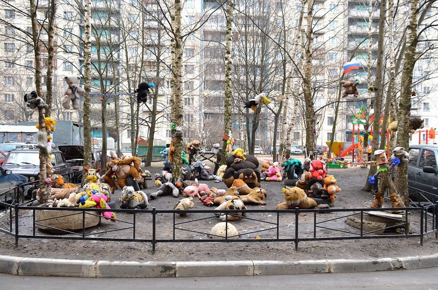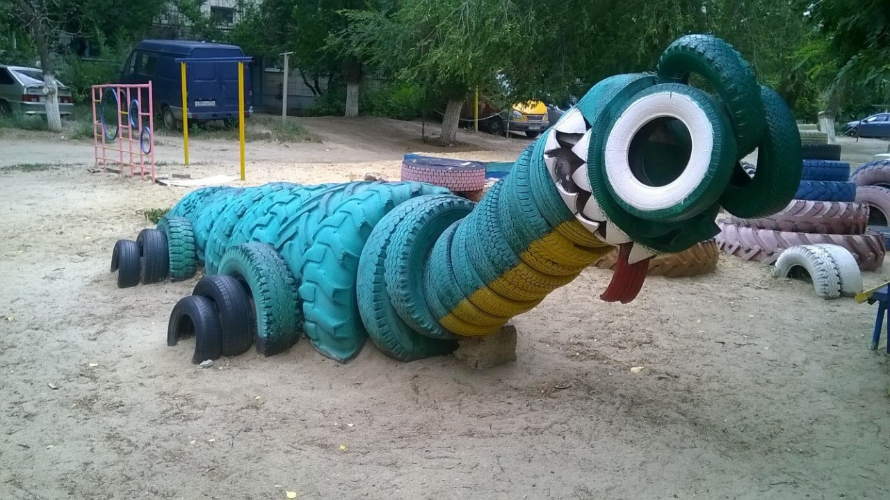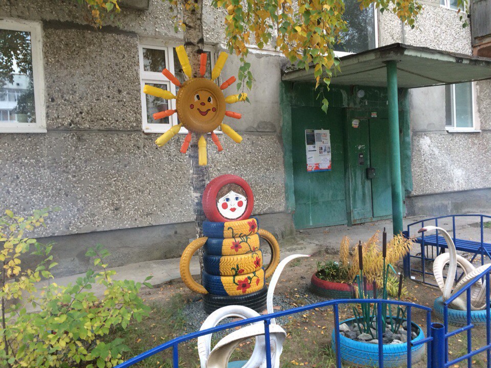 Дворы в России всегда украшали диковато выглядящими объектами, созданными из подручных материалов. Происходило это как из вечного стремления человека к красоте, так и из-за чудовищной ее нехватки в обыденности — абсолютное большинство дворов в постсоветском пространстве до сих пор выглядят оскорбительно для эстетического чувства. Но если раньше в качестве материала использовалось в основном дерево, то в новейшее время выбор существенно расширился. Используется все, что в развитых странах отправляется на вторичную переработку или становится объектом recycled art (произведения искусства, сделанные из мусора, — ТД): пластиковые бутылки, старая посуда, одежда, ну и, конечно, шины, шины, шины. Автомобильная покрышка теперь — стилеобразующий элемент русского ландшафтного дизайна. Явление стало настолько повсеместным, что в интернете появились специальные паблики, посвященные дворовому творчеству.