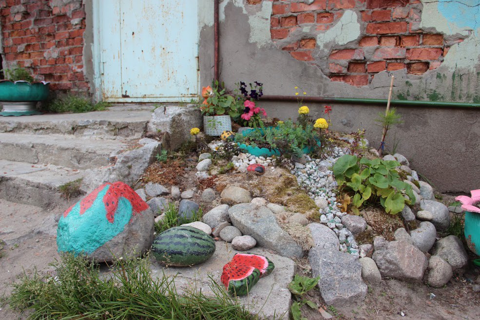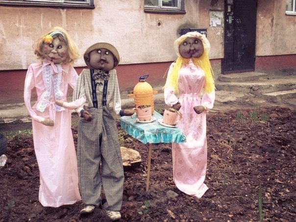 Участница сообщества «ЖЭК-арт» рассказывает про один из дворов Красноярска: «Сколько себя помню, этот двор всю жизнь называли «пьяным». Но этим летом жители поменяли его имидж. Сколько сил и фантазии было потрачено, даже не представляю. Местные рассказывают, что сделано это все совместными усилиями. Бабушки и дедушки по очереди охраняют эту красоту от окрестных хулиганов. Дети и родители не нарадуются. Можно сказать, забавные фигурки сплотили местных жителей. Вот уж, действительно, красота спасет мир».