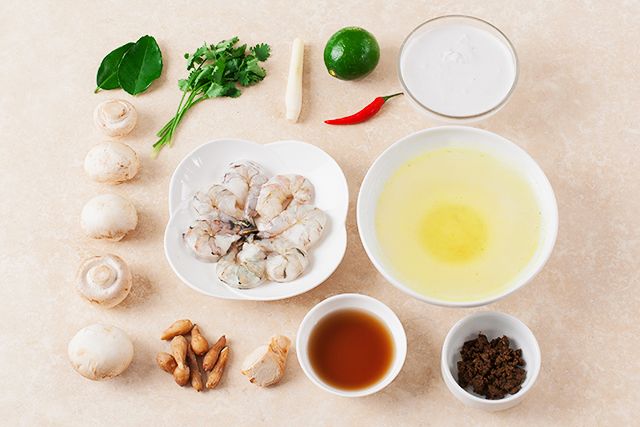 Вот, к примеру, что вам привезет «Шефмаркет» для том ям кунга — все ингредиенты подобраны ровно для двух порций, ничего выкидывать не придется: