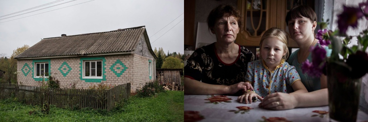 Слева: Дом Ольги Васильевны Романовой, который был выставлен на продажу.Справа: (слева направо) Елена Леонидовна Семенова, ее внучка Аня и дочь Галина в своем доме, выставленном на торги.Фото: Андрей Любимов для ТД