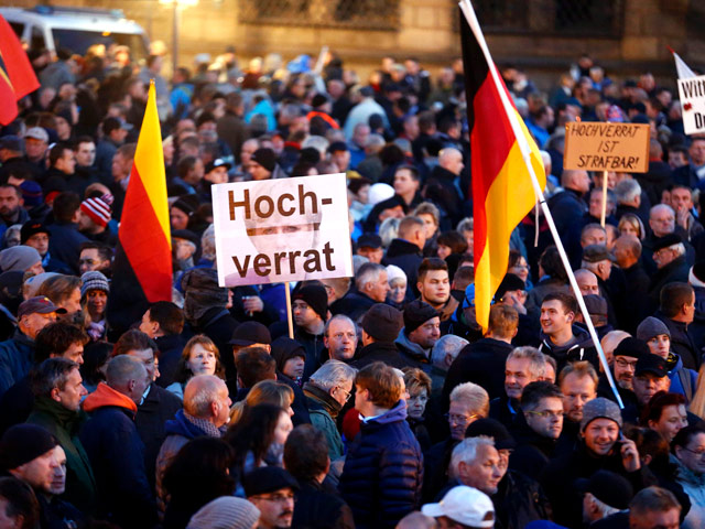 Напомним, Дрезден является местом основания Pegida. Движение было образовано в конце прошлого года и на пике популярности - после теракта в редакции журнала Charlie Hebdo в Париже - его руководителям удалось вывести на улицы Дрездена до 25 тысяч человек.