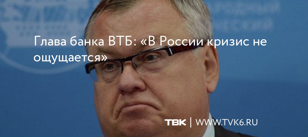 Президент ВТБ Андрей Костин во время своего выступления на форуме «ВТБ Капитала» «Россия зовет!» заявил, что в России кризис не ощущается: «Ни по каким обстоятельствам сегодня мы не ощущаем себя в кризисе», пишет РБК.