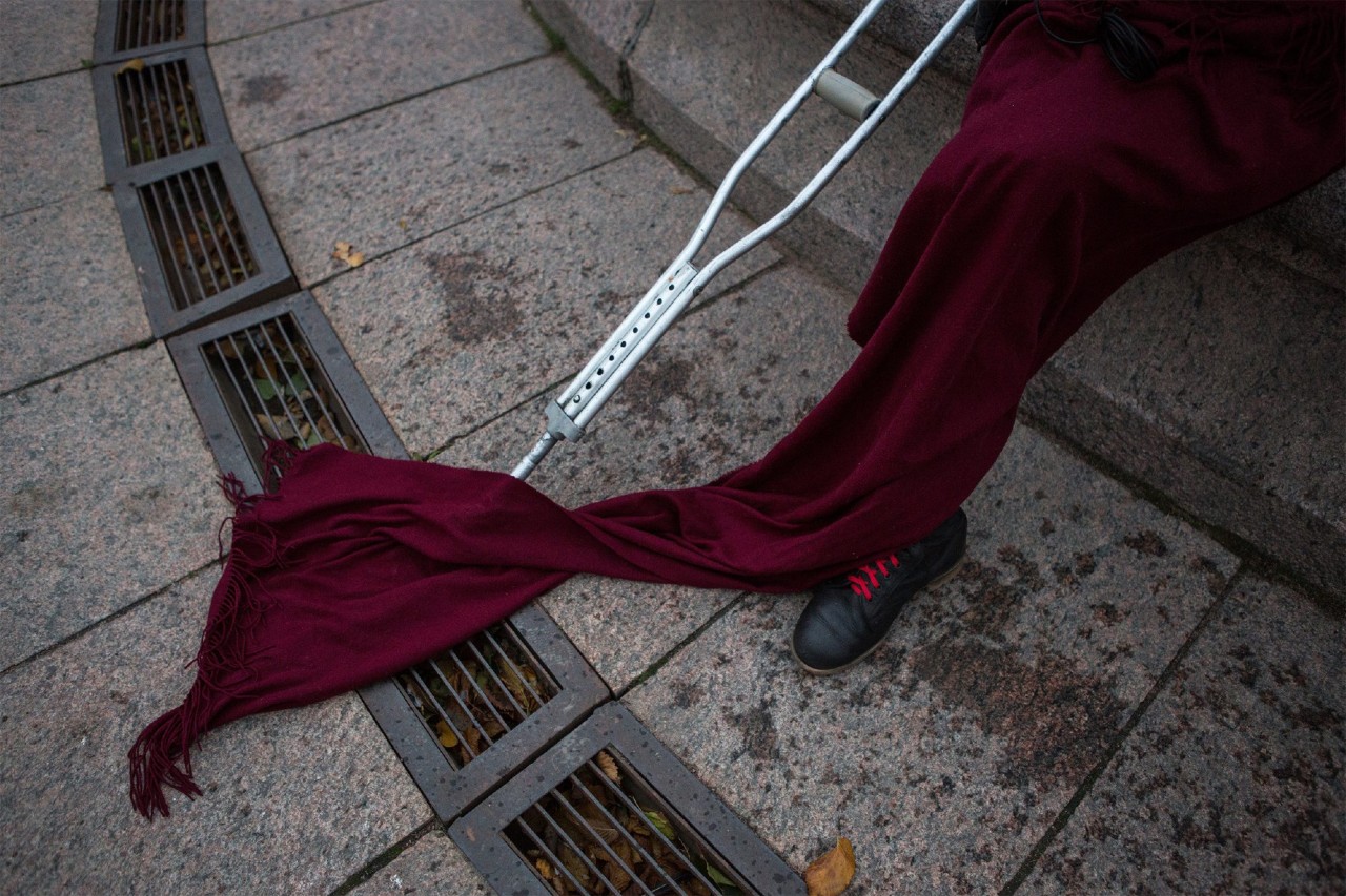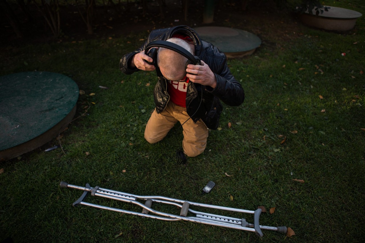 К нам, шатаясь, подходит помятый парень в синяках и ссадинах и просительным тоном произносит что-то невнятное. Веселкин отдает ему последнюю сигарету, парень, что-то пробормотав, уходит, оставляя после себя сильный запах алкоголя. «Он даже меня не узнал, — кивает на удаляющуюся спину Веселкин. — Я как-то сидел четыре месяца назад на остановке. Он мимо шел, у него рука была сломана — ему было х***о, у него было похмелье. А я коньяк пил и курил. Он тоже у меня сигарету стрельнул. Меня потрясает, что здоровые парни — при ногах, при голове, при руках — у меня, инвалида, сигареты последние стреляют и даже деньги. Я их не сужу — просто удивляюсь».