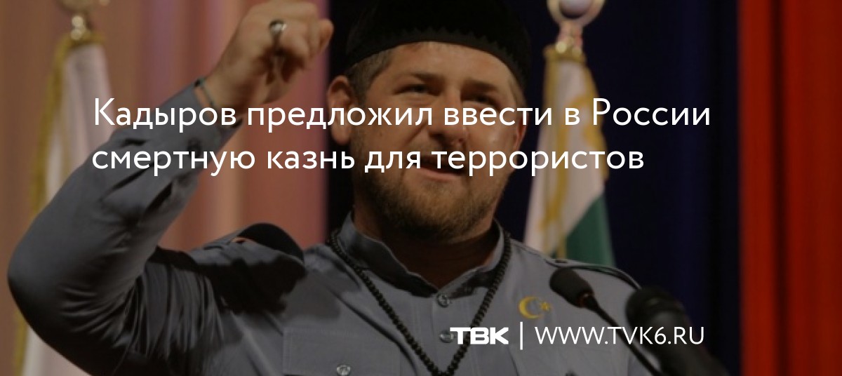 «Надо ввести обязательно смертную казнь. Чем быстрее они (террористы ИГИЛ) уйдут из этой жизни, тем быстрее у нас будет порядок», – заявил Кадыров.Глава Чечни также отметил, осуждённых за терроризм «неправильно» держать в тюрьмах.