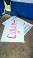 Представитель мэрии отрезал слово "Сирия" от плаката с надписью "Сирия - второй Афган?", который принесла одна из участниц. Впрочем, плакат нарастили куском бумаги и восстановили в прежнем виде. Другие плакаты с упоминанием Сирии просто отбирали.
