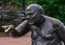 Скульптура в честь актера театра и кино Евгения Леонова работы Екатерины Чернышевой была установлена в 2001 на Аллее кинозвезд возле киностудии "Мосфильм".