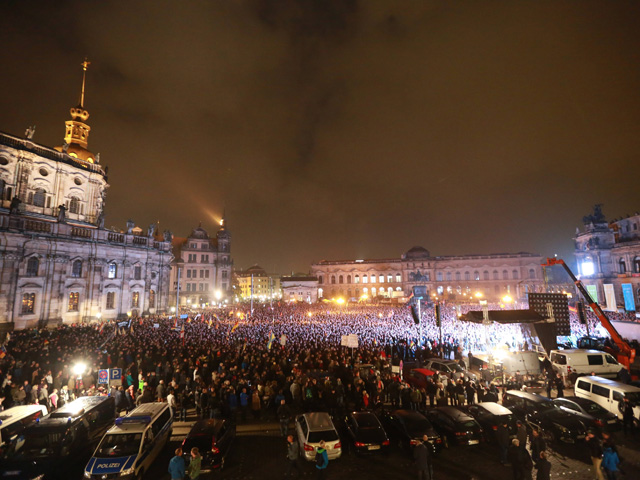 В понедельник тысячи сторонников антиисламского движения PEGIDA вышли на улицы Дрездена, чтобы отметить годовщину его создания. Движение выступает за ужесточение иммиграционных законов и защиту христианской культуры.