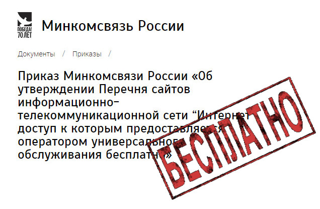На официальном портале министерства опубликован Приказ Минкомсвязи России «Об утверждении Перечня сайтов информационно-телекоммуникационной сети “Интернет”, доступ к которым предоставляется оператором универсального обслуживания бесплатно».