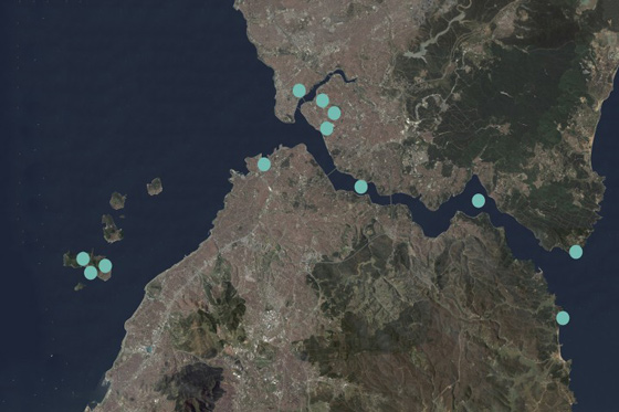© 4b.iksv.org Выставки XIV Стамбульской биеннале на карте города На уровне кураторской работы биеннале отличает сложная организация. Как и катастрофическое событие, «схватить», обозреть проект в целостности нельзя, он всегда частично недоступен опыту. Такое ощущение создается за счет «дисперсности» биеннале: ее фрагменты разбросаны по 36 точкам на карте города. Четыре большие коллективные экспозиции расположены в районе Бейоглу — это выставки в Istanbul Modern, галерее Arter, помещении старшей школы при итальянском посольстве и в бывшей греческой младшей школе в Галате. Часть других выставок удалена или малодоступна, например, находится на острове в Мраморном море или в древнем подземном водохранилище. Два места и вовсе оказываются «фантомными» — по указанным в гиде адресам никаких экспозиций нет.