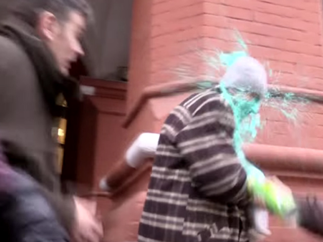 В ролике показано, как лидер SERB Гоша Тарасевич (настоящее имя - Игорь Бекетов) сначала говорит Ионову, что тот нарушает 319 статью УК РФ (оскорбление представителя власти), после чего пытается вырвать плакат у него из рук. Сразу после этого другой его Ионова облили, предположительно, зеленой краской и обсыпали, предположительно, мукой. Его плакат потом порвали.