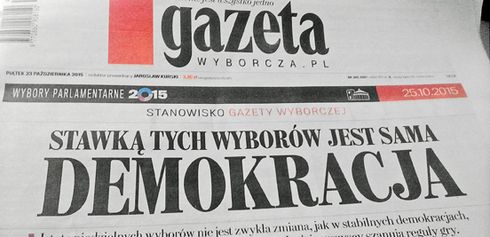 «Шапка» в «Газете Выборчей»: «Ставка нынешних выборов — сама демократия», Варшава, 23 октября 2015 года. Фото: Алексей Дзикавицкий