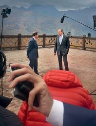 Вечером в среду пресс-секретарь президента Дмитрий Песков сообщил: Путин будет. Приедет на новой «Ладе Веста». В связи с чем уже утром в четверг на дорогах и даже горных тропах, ведущих к отелю, появились усиленные наряды полиции, внутри — неразговорчивые сотрудники ФСО, а в пресс-центре — съемочная группа телекомпании «ВАЗ-ТВ». Но начался для журналистов день с короткой беседы с министром иностранных дел Сергеем Лавровым.