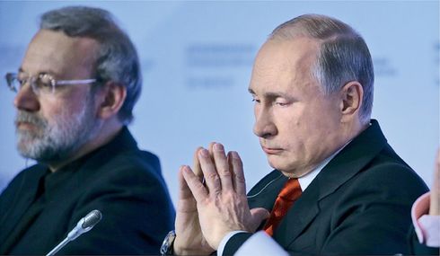 Спикер Исламского консультативного совета Ирана Али Лариджани и Владимир Путин согласны в том, что за хаос на Ближнем Востоке отвечают США, Сочи, 22 октября 2015 года. фото: Mikhail Metzel/TASS