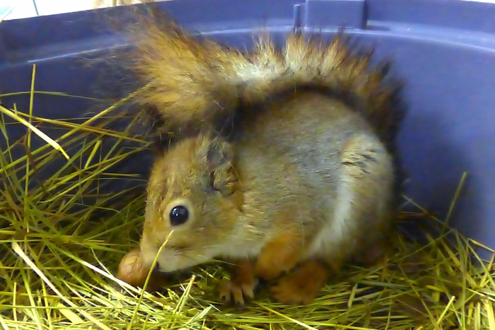 Белка, получившая ранение из травматического оружия, перенесла операцию и находится в центре помощи диким животным «Велес»,