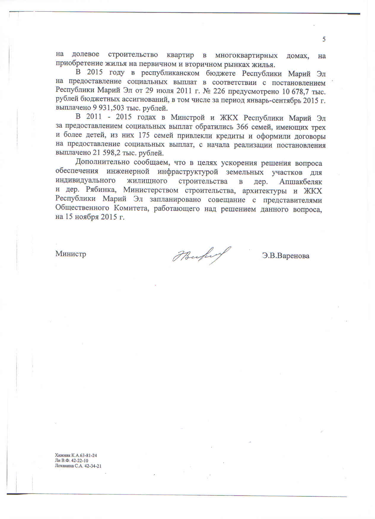 - Органами государственной власти Республики Марий Эл нарушены требования Федерального закона от 24.07.2008 № 161 – ФЗ «О содействии развитию жилищного строительства», Указа Президента РФ от 07.05.2012 №600 «О мерах по обеспечению граждан Российской Федерации доступным и комфортным жильём и повышению качества жилищно-коммунальных услуг».