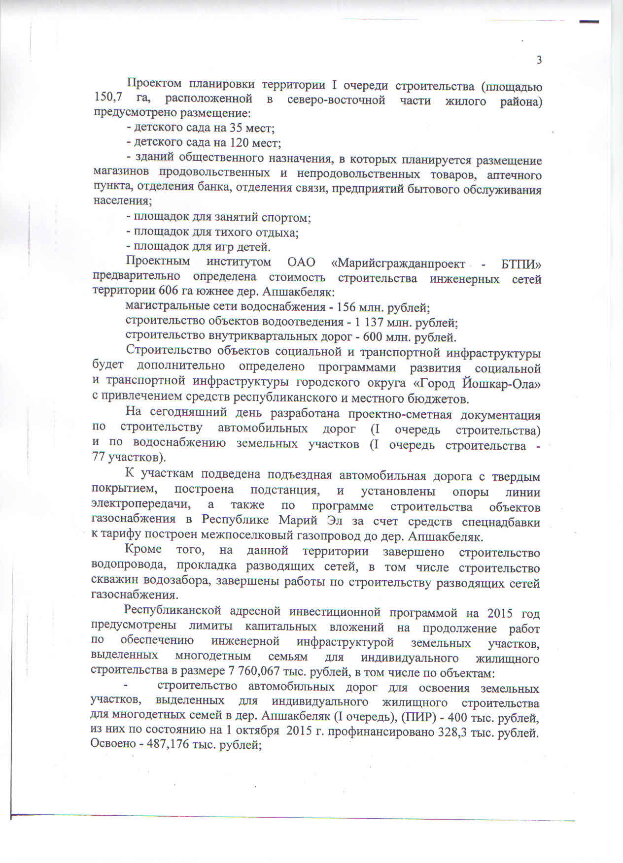 - Ни один из земельных участков, из земель, находящихся в федеральной собственности, предоставленных органами государственной власти Республики Марий Эл гражданам, не обеспечен объектами инженерной инфраструктуры.